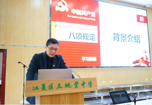 十一时许,四校党组织在土地堂中学召开联合主题党日会议。会议由乌龙泉中学党支部朱文生同志主持,土地堂中学校长刘庆华同志作校情专题汇报。附属学校中学党支部方海兵同志带领全体党员干部集体重温入党誓词,铮铮誓言响彻会场;刘媛同志领学党章重点章节;陈文雄同志部署主题教育实施方案及工作规范。