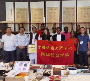活动现场,我校莫桑比克籍莫德、巴基斯坦籍哈瑞德、俄罗斯籍艾米莉同我院《中国篆刻艺术》课程宋斌教授,师生共同篆刻“东山小镇”、“走向世界”、“乡村振兴”三方印章赠送给主办方。中华慈善总会荣誉副会长徐镱轩为“宋斌教授·东山小镇篆刻文化工作室”揭牌,并接受作品捐赠,他说,感谢中国地质大学(武汉)国际学生参加此次活动,感受中国乡村振兴,并以印为信,预示东山小镇的文旅通过文化走向世界,影响世界,愿世界和平,共同富裕。