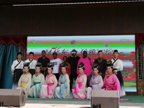 他们共同在黄梅大戏台上演了一场中外合璧,异国风情的表演。活动结束后,主办方为全体国际学生颁发公益活动参加证书。