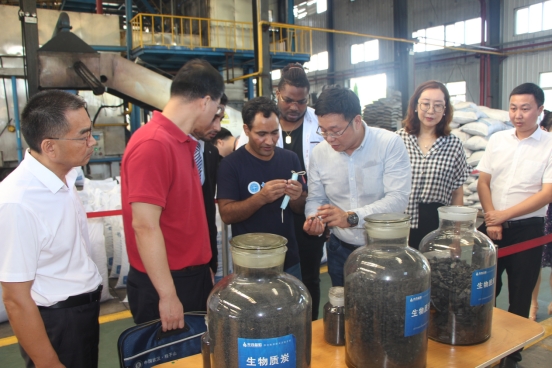 座谈前参观鄂州蓝焰公司办公大楼展厅、生物质实验室及热解车间