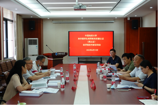 会上,许峰向各位专家介绍了来华留学生高等教育质量认证的背景与意义。许峰表示,学校高度重视此次再认证工作,根据中国地质大学(武汉)华留学质量再认证筹备工作启动会等会议精神,成立了由校领导牵头的“来华留学质量再认证领导小组”。许峰从前期准备及工作部署、自评自改及梳理总结、成果亮点及问题难点、发展计划及工作路线等四个方面详细介绍了学校来华留学教育质量再认证自评工作情况。与会专家对我校来华留学教育所取得的成绩予以充分肯定,专家组指出我校来华留学教育工作要继续坚持走特色发展之路,不断提升服务国家战略能力。专家组对照质量再认证指标体系,就自评报告和支撑材料相关内容进行了充分讨论,对学校来华留学指导思想、办学理念、教学与实践、服务管理、办学成效等各方面指标进行了全面梳理,认真探讨了学校来华留学质量再认证自评工作中的成绩亮点和问题不足,并提出中肯的修改建议与意见。