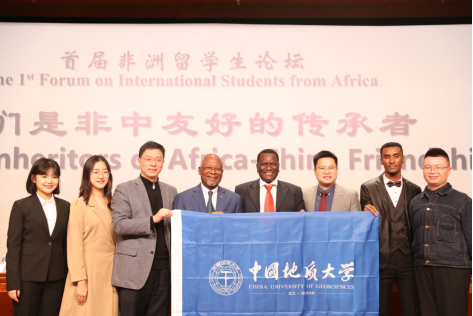 非盟驻华使团长、喀麦隆驻华大使马丁·姆帕纳(左四)与我校师生代表合影