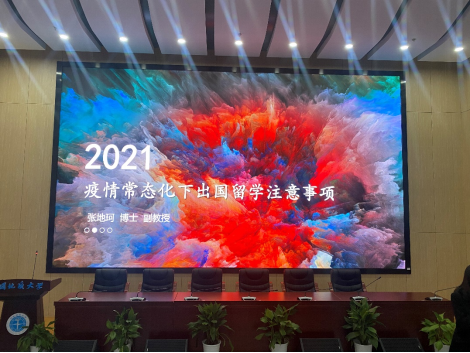 外国语学院张地珂副教授结合当前国内外疫情,介绍加拿大最新防疫政策及入境前后注意事项。张老师强调在国外需要规范言语行为,强化安全意识,切实维护好自身的合法权益。同时,她建议同学们加强身体锻炼及心理调适,做到健康留学、平安留学。