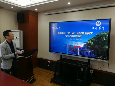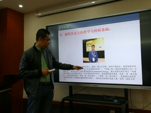 环境学院、材化学院、资源学院、计算机学院、地信学院、海洋学院的项目负责人依次围绕申报项目整体概况、申报建设各门具体课程基本情况、教学团队实力、课程体系建设与国际接轨情况、建设计划与保障措施等内容进行汇报。