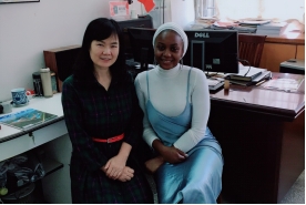 来自尼日尔的Hadjara Zataou(中文名:哈佳娜)本科和硕士都就读于地大石油工程专业,目前在资源学院攻读博士学位,她对地大有着深厚的情感,她说:“地大是我的第二个家,这里的老师和同学给了我无穷无尽的温暖。在中国留学的几年里,我增长了很多见识,逸夫博物馆里面的化石让我好奇,东湖美景让我流连忘返,各有特色的城市和乡村让我向往,善良的人们让我感恩。在这样一个高水平大学学习是我的荣幸,我很感恩我的导师谢丛娇在我人生困难的时刻为我指明方向,也感恩院领导为我们提供的就业机会。”