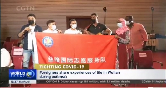 通讯员:(罗文旭、罗金刚、刘小舟 )近日,受武汉市人民政府外事办公室邀请,我校“钢铁侠”丝路国际志愿服务队代表参加“家在武汉—在汉外国友人心系武汉故事分享会”,该活动被央视英语频道(CGTN)新闻报道。
