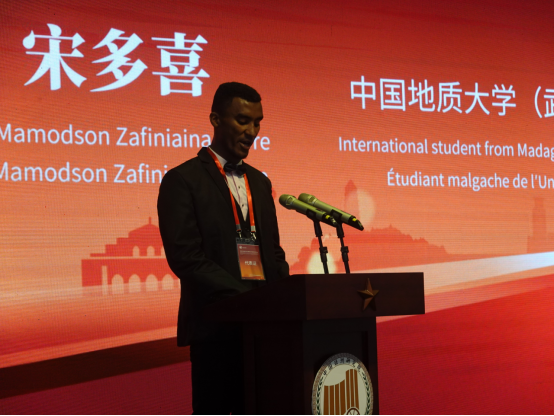 我校两名留学生发言给中外与会嘉宾留下深刻印象,并被给予高度评价。“七一勋章”获得者、首位中国政府非洲事务特别代表刘贵今大使说:“听了地大两名非洲籍留学生的演讲,让我对未来非洲的减贫脱困充满信心!”非洲联盟驻华代表处常驻代表拉赫曼塔拉·奥斯曼先生说:“希望你二人在中国好好深造,学成之后尽快把先进的