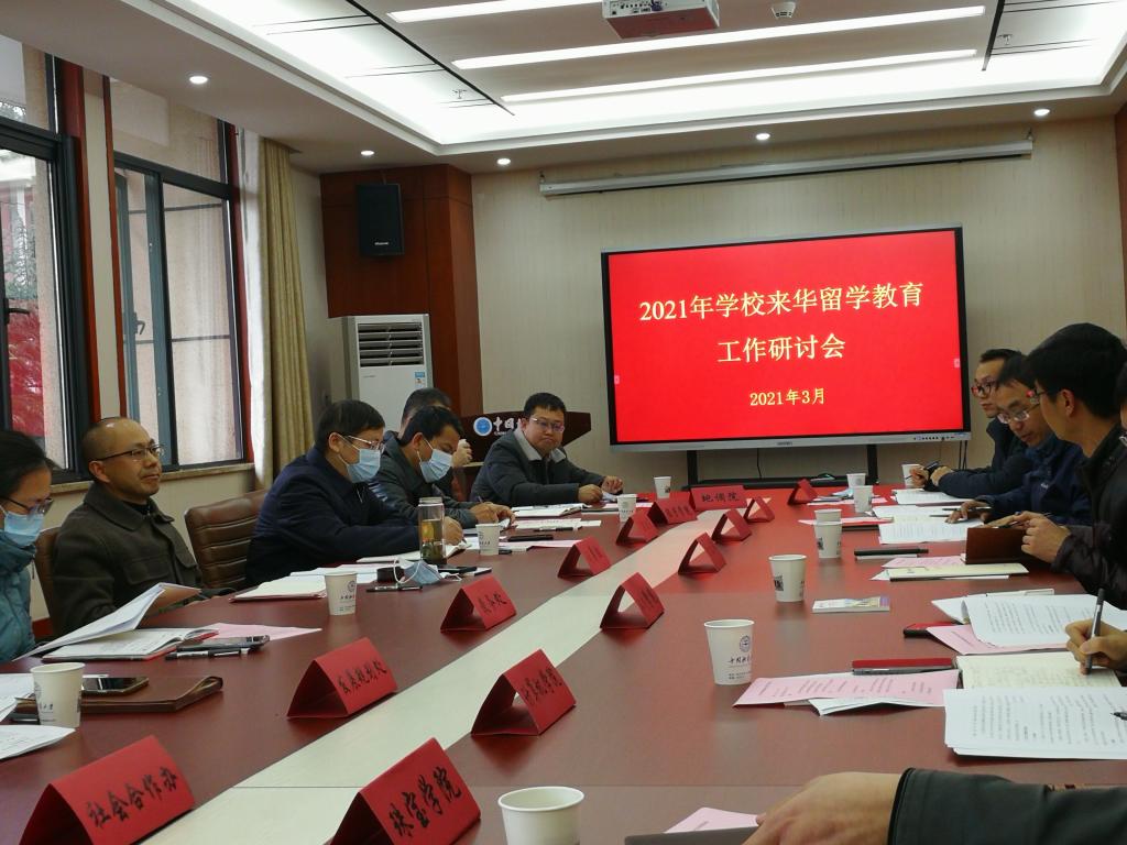 (通讯员 吴丹 吴思源 王诲)3月11日上午,2021年来华留学教育工作研讨会在丝绸之路学院212会议室召开。副校长刘勇胜,教务处、研究生院、发展规划处、资源学院、环境学院、地调院、经管学院、公管学院等职能部门和相关学院负责人参会。国际合作处处长暨英国威廉集团院长甘义群主持会议。