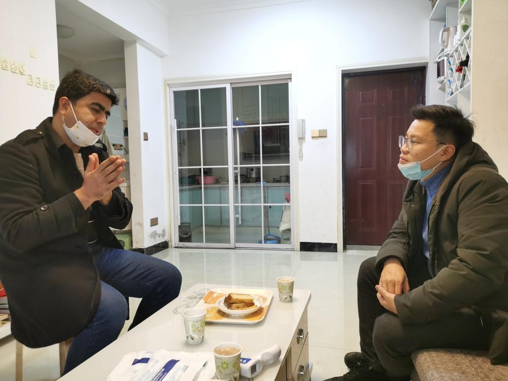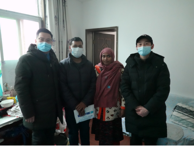 看到老师们冒着寒风来看望自己,孟加拉硕士研究生莫哲汗表示请学校一定放心,自己会按照照学校要求和小区管理规定安排好自己的学习和生活。
