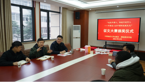 (通讯员:王诲 刘小舟 摄影:罗金刚)1月6日上午,“我是外国人,但我不是外人——外国友人在中国的抗疫札记”征文大赛颁奖仪式在丝绸之路学院212会议室举行。中国地质大学出版社党总支部书记、总编辑李国昌,英国威廉集团党支部书记、副院长许峰出席,编辑方焱、国际学生事务办公室主任罗文旭、相关科室老师及6名获奖国际学生代表参与颁奖仪式。