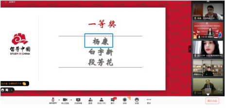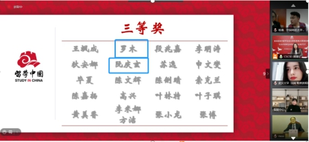 我校阿富汗籍杨康斩获一等奖;赤道几内亚籍罗木、越南籍阮庆玄获三等奖;柬埔寨籍龚少杰获得优秀奖,指导老师为对外汉语教师殷思琴。获奖同学在不同国家和地区参加了云典礼。