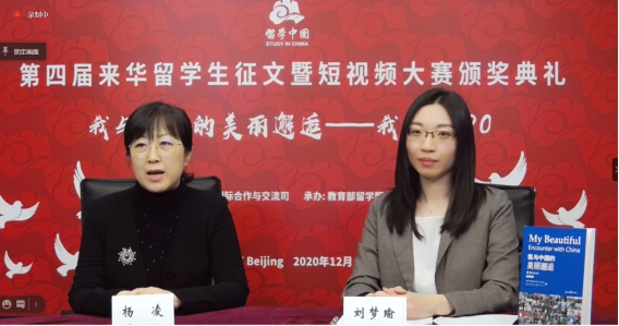 (通讯员 罗文旭 赵阳平 摄影 罗金刚)12月8日下午,由教育部国际合作与交流司主办,教育部留学服务中心承办的第四届“我与中国的美丽邂逅”来华留学生征文大赛暨短视频大赛颁奖典礼通过腾讯会议线上举办。我校获得优秀组织奖。