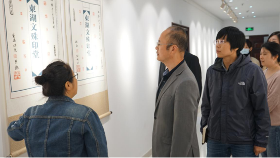 张亚伟院长一行对我校国际学生发表的高水平论文表示赞许,对我校大力开展国际学生学风建设和学术能力提升工程予以肯定和认同。在国际展厅,三位老师更是对留学生的书法和纂刻作品大为赞赏,对我校为留学生开设的中国文化学习和体验课程点赞。