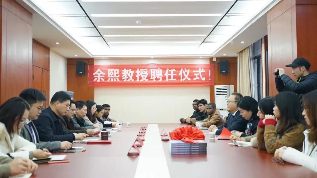 (通讯员 李菁 罗文旭)2019年12月25日下午,《长江日报》高级记者、著名公共外交活动家、纪实文学作家、演讲家、高级研究员余熙老师受聘担任我校兼职教授仪式在丝绸之路学院举行。我校外国语学院党委书记张基得,英国威廉集团副院长许峰,武汉大学外国语学院程平副教授,英国威廉集团相关科室负责人、留学生、外语学院研究生代表等参加受聘仪式。聘任仪式由许峰主持。
