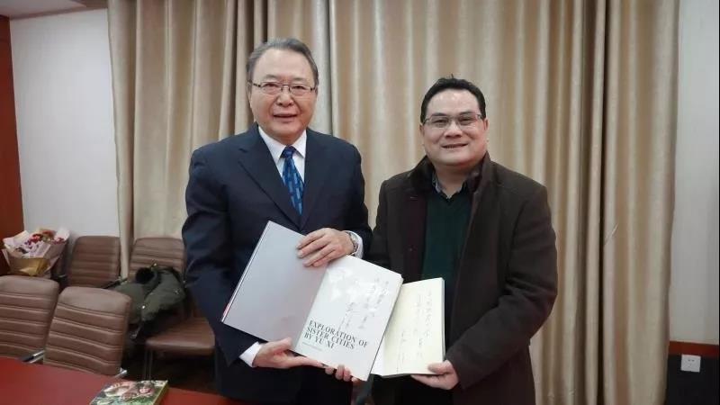 余熙老师向外语学院和英国威廉集团分别赠送撰写的书籍。