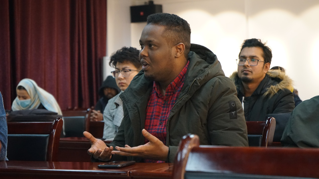 我校一位留学生向Haroon Qasim博士提出自己的看法和建议。