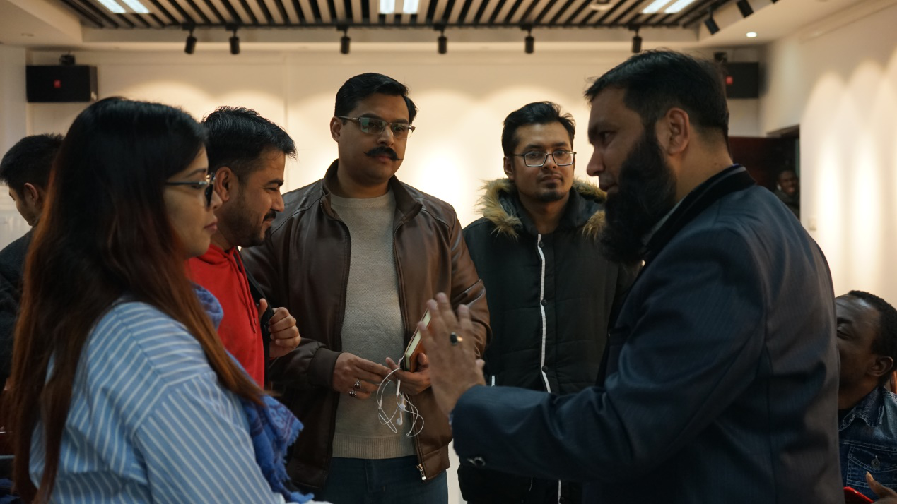 茶歇环节期间,Muhammad Rashid Ali博士与留学生们探讨学术问题。