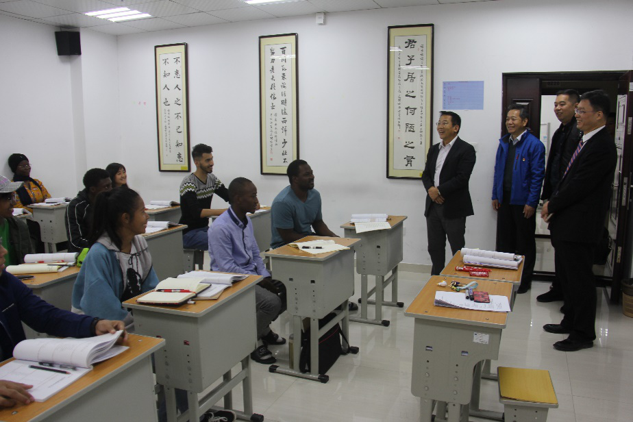 调研组同时对学生们的教室、宿舍、生活服务设施等进行了考察,参观了我校国际学生的中国书画篆刻作品展厅,对我校国际学生的学习、生活环境给予了充分的肯定。