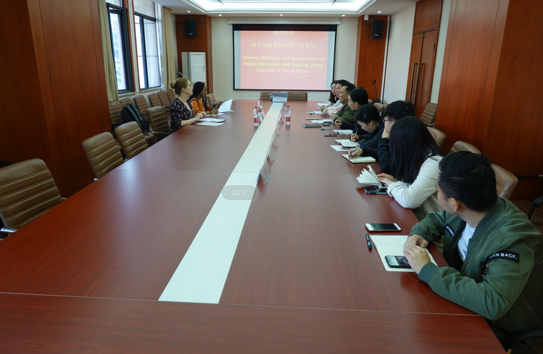 (通讯员 杨素 摄影:罗金刚)10月21日,南非高等教育与培训部奖学金司司长Ruth Roberts 女士 及副司长Wendy Adams女士一行2人来我校访问,英国威廉集团副院长张立军、国际副处长范铭、招生与拓展项目部主任袁江、及留管教师出席会谈。