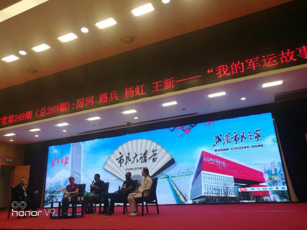 (通讯员 杨素 罗文旭)第七届世界军人运动会临近,无数志愿者正在为军运会的各个环节、各个场馆、各个岗位无私奉献,为军运会添砖加瓦,为军运会增光添彩。4月20日下午,我校2018级地球物理专业的博士生志愿者路兵受邀登台第249期“市民大讲堂”,和其他3名来自黄鹤楼志愿者讲解团队、武汉第四医院急诊部、武汉大学文学院的中外志愿者一起讲述“军运”故事。
