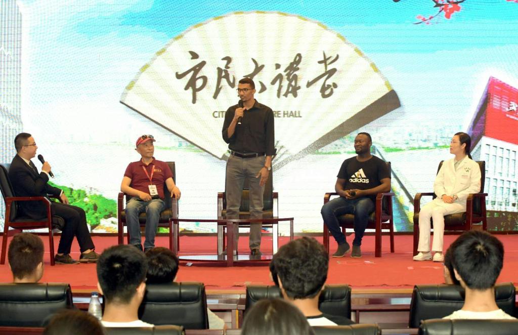 路兵来自苏丹,硕士、博士均在我校学习。站在“市民大讲堂”的大舞台上,他丝毫不怯场,用流利的汉语和主持人进行交流,甚至会说武汉方言,谈吐幽默,引来现场聆听讲座市民的阵阵掌声,连主持人都不得不佩服地赞叹道,如果闭上眼睛听路兵讲话,还以为采访对象是中国人,没想到竟是一个学理科的非语言科班出身的外国留学生。路兵说来中国之前只在优酷上看过一些阿拉伯老师教汉语的视频,以为汉语就是学拼音而已,不是很难,以为中国人都会飞檐走壁,来中国之后他才发现实际情况和自己想的大相径庭。虽然学习中文很难,但他非常热爱中国的历史文化。通过不断的学习以及在日常生活和中国人交流,他的汉语水平突飞猛进。