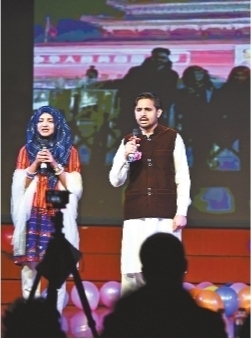 参赛留学生在选拔赛上集体唱出《三字经》 记者郭良朔 摄