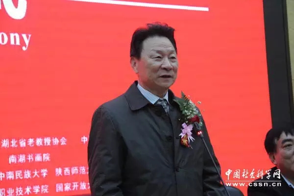开幕式由湖北省书法家协会高校分会主席、湖北省高校老教授协会副会长、湖北高校老年协会副会长丁振国教授主持。湖北省国际文化交流中心理事长、湖北省人大常委会原副主任赵斌宣布展览开幕。