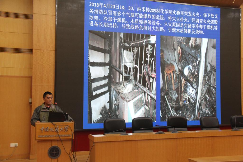 在急救讲座后喻家山派出所的周正旗警官和我校保卫处消防科李洋老师进行了关于高层逃生的知识讲座,用我校近几年火灾的案例给学生们敲响了安全警钟。在讲座后,李洋老师针对此次讲座重点,向同学们提出了几个问题,同学们积极回答,得到了老师的赞许。
