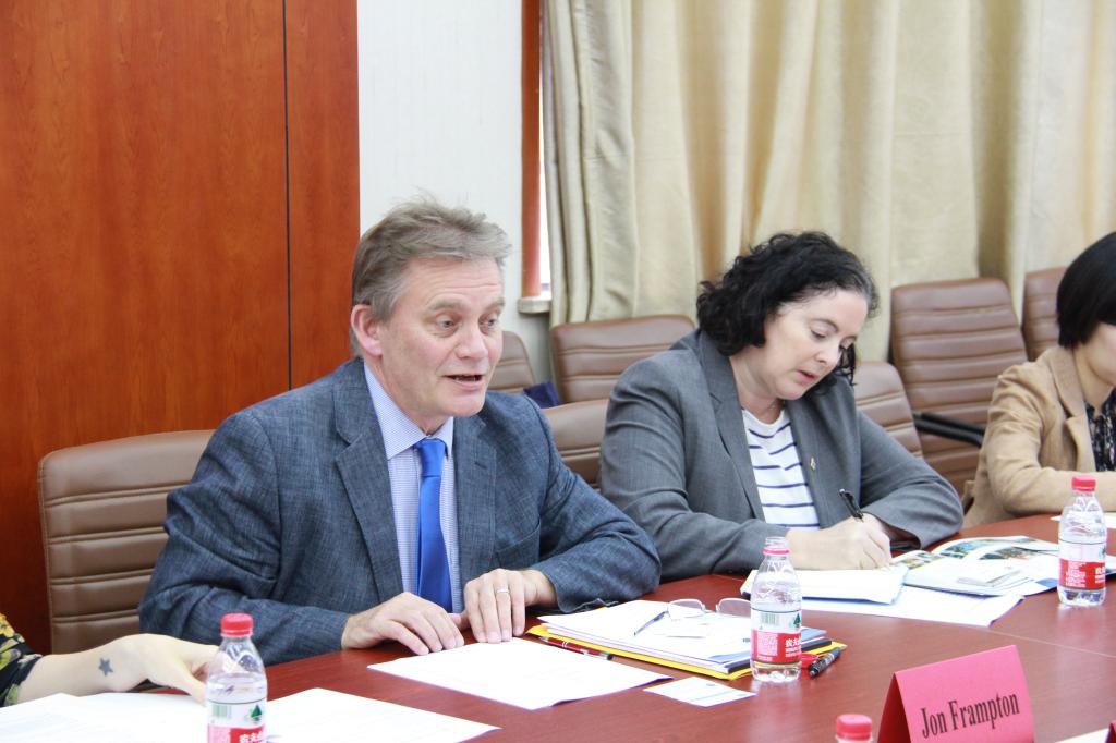 约翰·范普顿教授介绍了伯明翰大学在地质学相关领域方面的优势对我校地球科学学院近五年取得的成就表示钦佩。