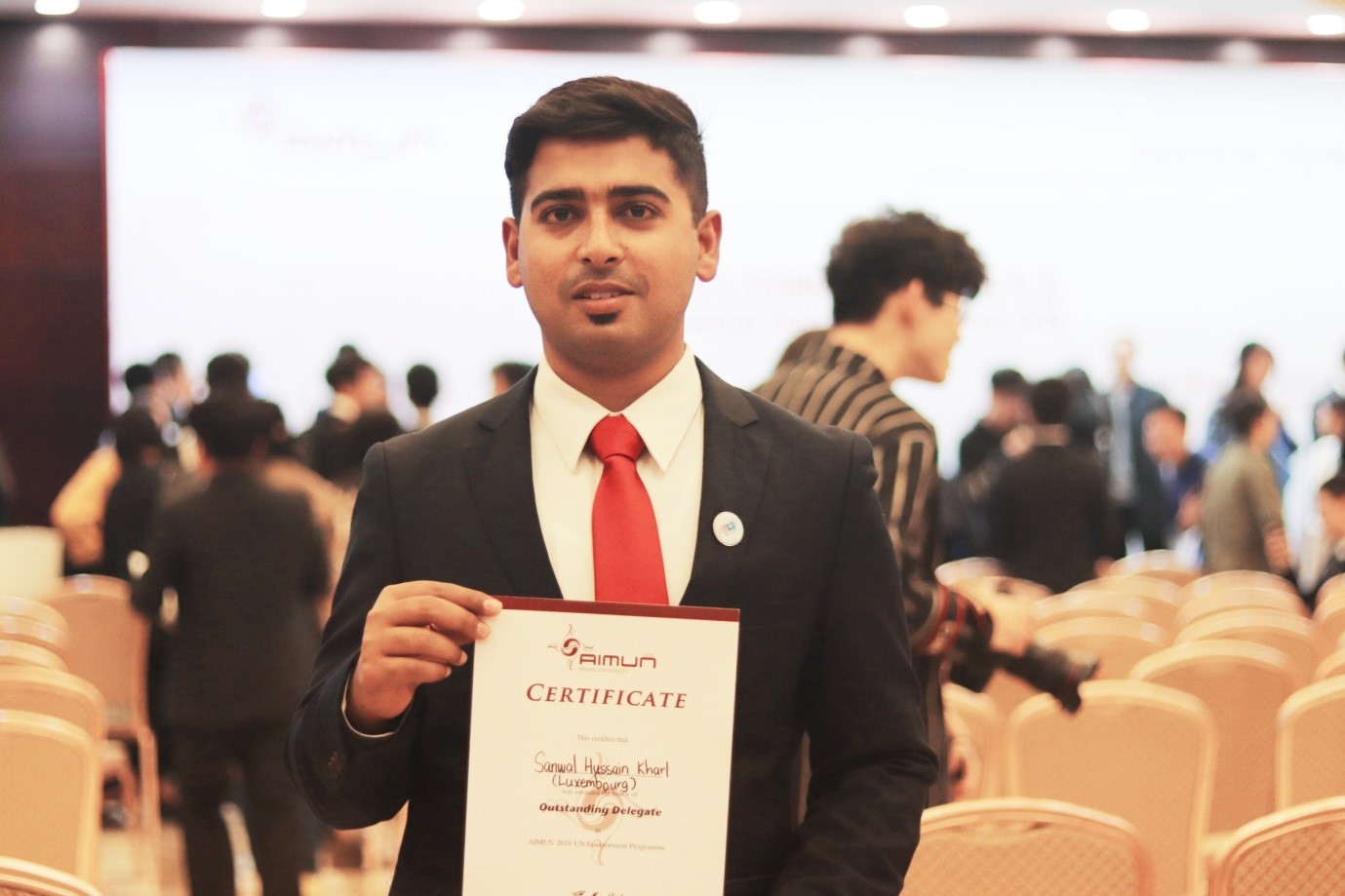 The theme of AIMUN 2018 was “Globalization at the Crossroads: Moving Forward with Youth”. At the conference, Sanwal worked as a member of the UNEP (United Nations Environment Programme) committee and the topic was “Advocating Sustainable Development in Tourism’. As the delegate of Luxembourg, Sanwal played an active role in sessional discussions and succeeded in blocking the developed nations, the main driving force of most discussions. Meanwhile, Sanwal made deep friendship with many delegates from other universities through intensive conference discussions and diversified additional activities. Sanwal mentioned that it was his best achievement at MUN platform.