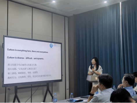 文华学院丁秋芸副教授在题为《以文化人·以赛砺学:全流程学科赛考体系构建与跨文化传播的协同推进》的报告中,分享了文华学院在跨文化教育方面的实践经验。她指出,要将跨文化能力培养融入学科教学全过程,构建全流程的学科赛考体系,实现以赛促学、以赛促教、以赛促改。丁副教授以文华学院的具体实践为例,展示了如何通过学科竞赛、课程考核、实践项目等多种形式,将跨文化能力培养与学科专业知识学习有机结合,有效提升学生的跨文化交际能力和综合素质。