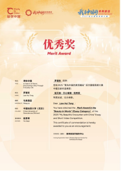 据悉,本届大赛所有获奖作品将在留学中国网、微信公众号及海外社交媒体矩阵陆续发布。征文获奖作品已汇编为《我与中国的美丽邂逅》正式出版。我校将继续深化来华留学教育改革,鼓励更多国际学生用文字和镜头记录在华生活,讲好中国故事,成为中国与世界交流的青春使者。