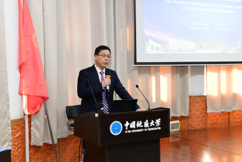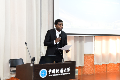 非洲校友会副会长苏丹籍莫天逸发言,表示非常荣幸见证非洲校友会的成立,这是中非关系不断发展的一个里程碑;象征着中非教育、文化和交流关系的加强;他鼓励非洲校友应珍惜在地大学习的经历与机会,站在学术创新的前沿,展示自己的学术成果,为母校赢得荣誉。