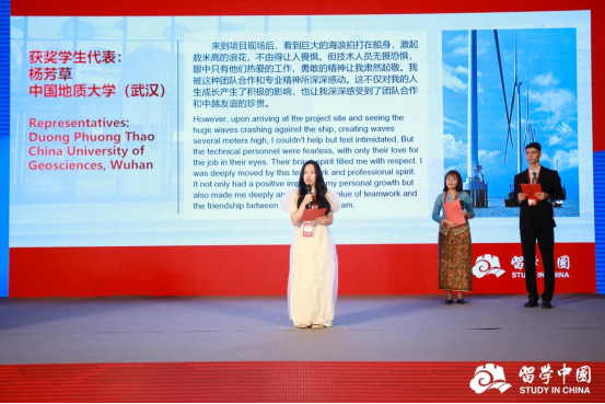 在第七届“我与中国的美丽邂逅”来华留学生征文暨短视频大赛中,我校越南籍国际学生Duong Phuong Thao(中文名:杨芳草)的作品《“一带一路”新画卷:走进越南》、巴基斯坦籍国际学生Haneef Nourin(中文名:谢丽)的作品《梦想的故事》获大赛三等奖,中国地质大学(武汉)获“院校优秀组织奖”,英国威廉集团殷思琴老师获“优秀指导教师”奖。发布仪式上,为2023年“我与中国的美丽邂逅”征文暨短视频大赛的获奖者颁发了奖状和证书,同期发布了《我与中国的美丽邂逅——2023年来华留学生征文大赛优秀作品集》。2023年大赛吸引了800余名来华留学生通过文字、视频的形式参赛,评选出近百篇征文及短视频优秀作品。