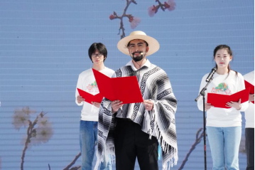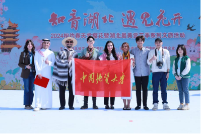 启动仪式上,由我校六名国际学生,柬埔寨籍RITHSETHSAK ROS(梁志兴),蒙古籍KHULAN ARIUNAA(胡兰),智利籍JOAQUIN ALONSO COUCHOT GODOY(冯小龙),东帝汶籍CONIDIA GABRIELA DA SILVA(孔妮),约旦籍AKTHAM ABDALLAH MOUSA ALEMARYEEN(赵豪)和HAYA SUFIAN SULAIMAN AL EDAILY(叶林)参与的诗朗诵《知音湖北,遇见樱花》,赢得了在场嘉宾与游客的阵阵掌声。