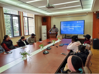 国际学生办公室大明老师强调国际学生要积极主动联系导师,积极与导师沟通交流,合理规划时间,结合专业理论知识与实践,做好毕业论文写作冲刺阶段各项工作,争创高质量优秀论文。