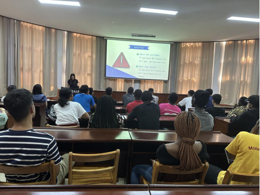 薛亚敏老师在第二部分向同学们强调了学习的日常纪律,鼓励留学生新生珍惜求学机会,积极参加各类文化交流活动,严格遵守中国的法律法规及校纪校规,尽快融入地大的学习和生活,勤于学习,敏于求知,勇于实践。