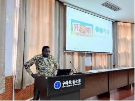 九月金风盛,恰似新征程。在这个盛载收获,孕育希望的季节里,预科师生们共同迎来了新学期。英国威廉集团殷思琴老师首先致欢迎辞,向来自世界各地的预科新生表示热烈的欢迎。她向同学们介绍了学院预科教育的发展历程、教学优势、国际化办学成果和特色,并对大家即将迎来的预科学习和生活做了详细介绍。她提到,地大是一所非常美丽的校园,设施齐全、师资强大,并引用习近平主席给南非德班理工大学孔子学院师生的回信,勉励同学们用所见所闻向世界讲述中国故事,用所学所识搭建中外文化交流桥梁。通过生动活泼的讲述,同学们对学校、对武汉有了更多元的了解,纷纷表示非常期待他们接下来在中国的生活。