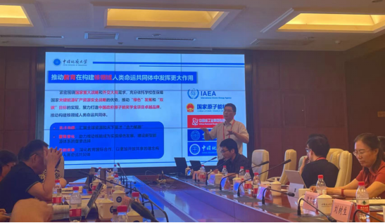 在主旨报告环节,许峰教授做了题为《坚持服务大局,特色发展,以治理体系和治理能力现代化建设,打造“留学中国”品牌》的汇报,并表示学校将充分依托在保障国家关键能源矿产资源安全战略的优势,合力打造中国政府原子能奖学金项目卓越品牌,为中国核能事业发展提供“地大方案”。
