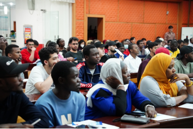来自喻家山派出所的王璨警官详细讲解了与国际学生相关的法律法规及最新相关政策,提醒同学们谨防非法拘留、非法就业、电信诈骗等违法行为,并强调,“法律面前人人平等”、“外国人在中国领土需遵守中国法律,否则将会被追究法律责任”。