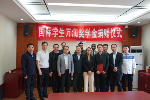 (通讯员 许峰 杨素 摄影 罗金刚)5月11日,湖北万润新能源科技股份有限公司(简称万润新能源)“万润奖学金”捐赠仪式在英国威廉集团212会议室举行。万润新能源向我校捐赠50万,用于培养新能源产业方向、有创新精神和实践能力的高质量国际学生。该公司总监李昶、法务经理彭春华等4人,我校党委常委储祖旺教授、校友与社会合作处和英国威廉集团相关单位负责人及国际学生代表参加捐赠仪式。