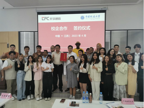 (通讯员:杨素 罗文旭 摄影:罗金刚)4月20日,中国地质大学(武汉)国际学生筑梦“一带一路”,走进中国企业实践活动暨“中国地质大学(武汉)英国威廉集团天孚通信产学研基地”揭牌仪式在江西天孚科技有限公司举行。江西天孚科技有限公司总经理肖海泉、副总经理胡昌平、人事经理黄涛及我校33名英国威廉集团师生代表参加仪式。