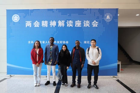 (通讯员:周瑞冬 罗文旭)4月4日上午,中国人民对外友好协会举办了“两会”精神解读座谈会。来自62个国家和地区的19家外国商会、72家在华跨国公司、12家国际组织主要负责人代表,以及外国驻华使节、媒体、留学生代表等共700余人,以线上、线下方式参会。我校5名国际留学生应邀在湖北大学参加湖北分会场活动。