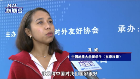 我校经济管理学院东帝汶籍留学生孔妮接受湖北媒体采访时表示:“自中东建交以来,中国积极为东提供力所能及的援助,助力东经济社会发展,展现负责任大国形象,为东人民带来了实实在在的福祉。我觉得中国对我们国家很好,有很多影响。我们也可以跟中国人一起学习以后怎么发展。”