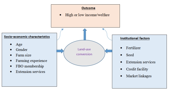 论文以加纳Asutifi-North区为研究区域。在这一区域,农业是传统的经济活动,这里人多地少,土地分散,土地主要由小农业主所拥有。然而,随着当地大小不同规模的金矿采矿业的发展,尤其是小型非法采矿业的无序发展,造成了当地建设用地需求量不断增大,致使大量农业用地转变为矿业用地,从而导致农业土地的不断萎缩。